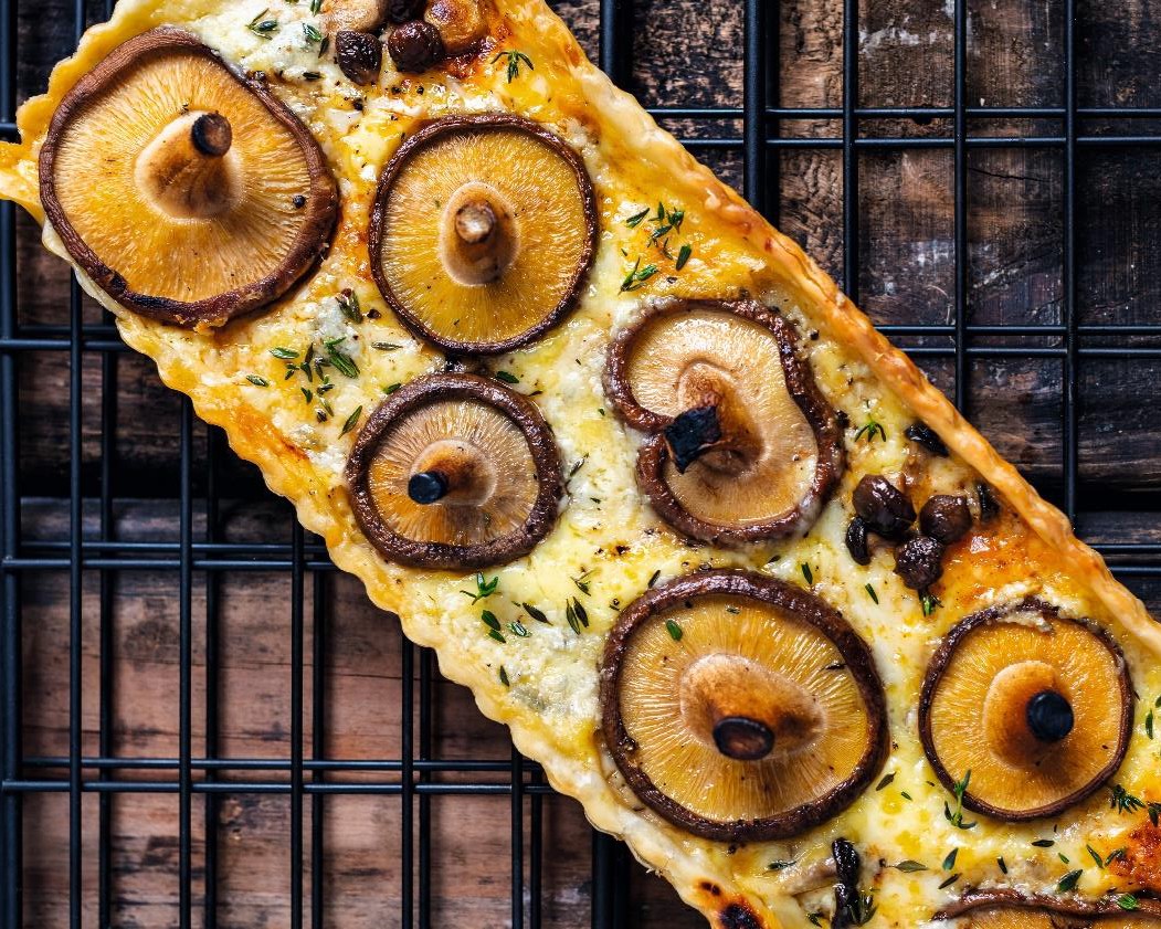 “This is an upgraded version of an old-fashioned mushroom pie. You can play around with any cheese as long as you use mozzarella as the main cheese. This pie can also be served as a snack with a glass of ruby cabernet.”