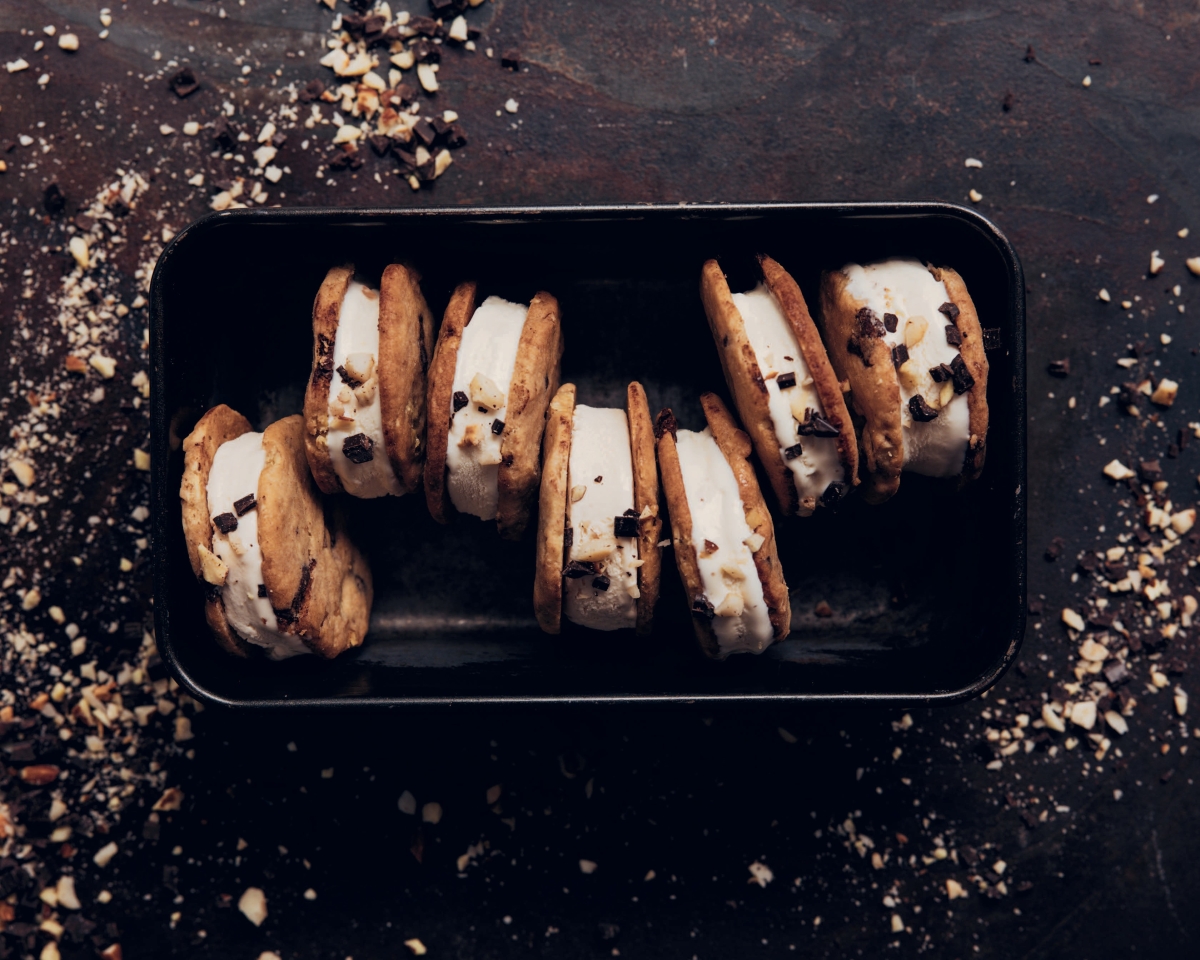 Silky amaretto ice cream meets crisp almond cookies, rolled in dark chocolate and toasted nuts becomes a playful, grown-up dessert that balances bitterness and sweetness, perfect for lingering dinners and celebratory occasions.
