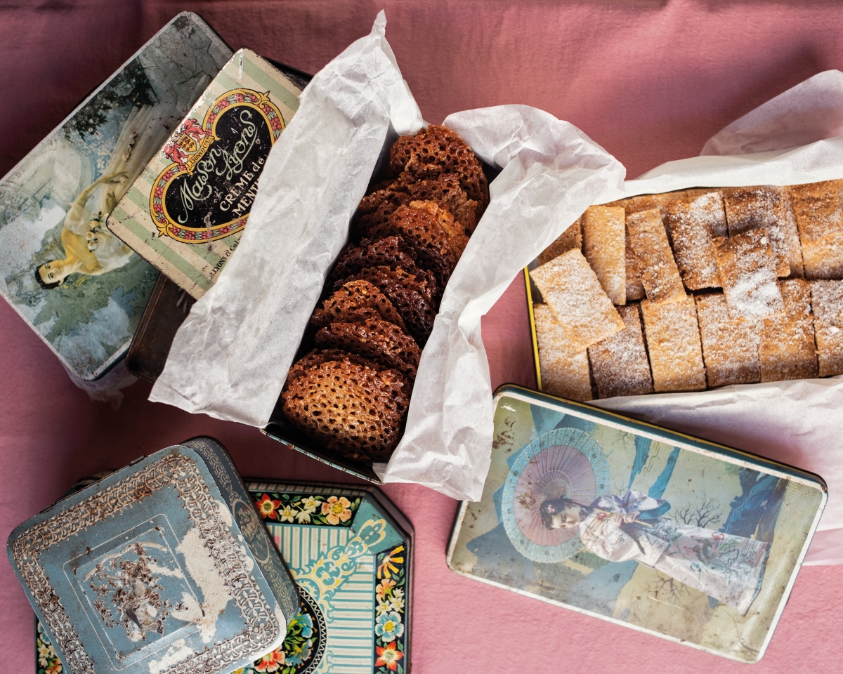 “Why the inverted commas? This recipe does not actually use brown butter but harnesses the work of the oven to brown the shortbread a little, resulting in my signature shortbread – a thin finger of nutty, buttery biscuit.”